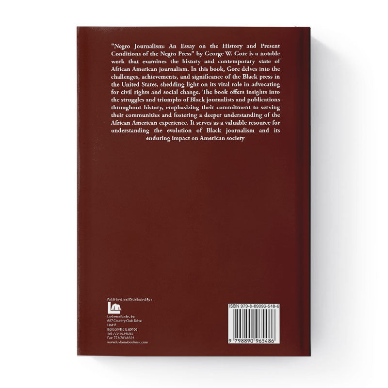 "Negro Journalism: An Essay on the History and Present Conditions of the Negro Press" by George W. Gore is a notable work that examines the history and contemporary state of African American journalism. In this book, Gore delves into the challenges, achievements, and significance of the Black press in the United States, shedding light on its vital role in advocating for civil rights and social change. The book offers insights into the struggles and triumphs of Black journalists and publications throughout history, emphasizing their commitment to serving their communities and fostering a deeper understanding of the African American experience. It serves as a valuable resource for understanding the evolution of Black journalism and its enduring impact on American society.