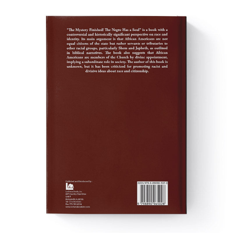 "The Mystery Finished! The Negro Has a Soul" is a book with a controversial and historically significant perspective on race and identity. Its main argument is that African Americans are not equal citizens of the state but rather servants or tributaries to other racial groups, particularly Shem and Japheth, as outlined in biblical narratives. The book also suggests that African Americans are members of the Church by divine appointment, implying a subordinate role in society. The author of this book is unknown, but it has been criticized for promoting racist and divisive ideas about race and citizenship.