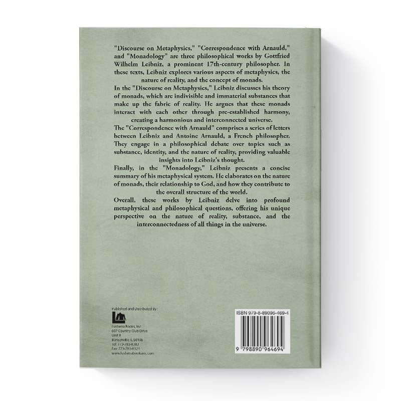 "Discourse on Metaphysics," "Correspondence with Arnauld," and "Monadology" are three philosophical works by Gottfried Wilhelm Leibniz, a prominent 17th-century philosopher. In these texts, Leibniz explores various aspects of metaphysics, the nature of reality, and the concept of monads.