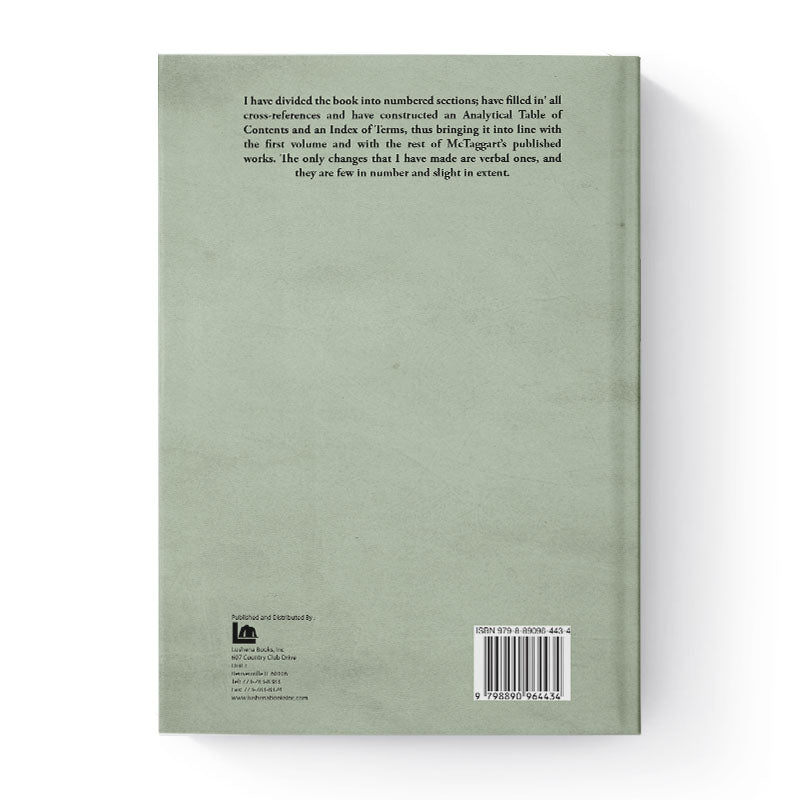 I have divided the book into numbered sections; have filled in' all cross-references and have constructed an Analytical Table of Contents and an Index of Terms, thus bringing it into line with the first volume and with the rest of McTaggart’s published works. The only changes that I have made are verbal ones, and they are few in number and slight in extent.